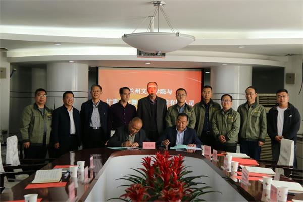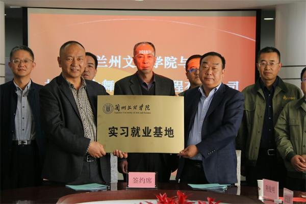 最后,传媒工程学院院长陈秀武教授与甘肃工大舞台技术工程有限公司董事长周厚金签署了校企合作协议书,并对“兰州文理学院实习基地”进行了揭牌,并合影留念。
