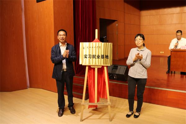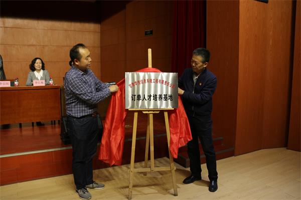 揭牌签约仪式在热烈的气氛中进行,仪式由传媒工程学院党总支书记宁学君主持,传媒工程学院院长陈秀武与甘肃华悦公司总经理成文学先后进行了热情洋溢的致辞,展惠英处长与成文学总经理共同为“实习就业基地”揭牌,李宗刚处长与成文学总经理共同为“订单人才培养基地”揭牌,参加仪式现场的老师和同学们报以热烈的掌声,象征着双方单位的合作迈出了坚实的一步 。
