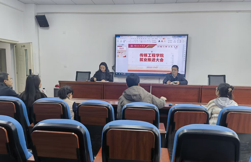 1月4日下午,传媒工程学院召开2026届毕业生就业工作推进会,学院党政负责人、2026届毕业班班主任、学院就业专干参加会议。会议通报了2026届毕业生就业状况,特别是困难群体的就业情况。
