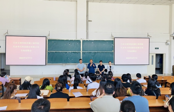 天水华天科技股份有限公司校企合作部部长吴永辉对公司目前发展状况做了简要介绍,对计划招聘的就业岗位和毕业生未来就业发展前景做了详细的宣讲。